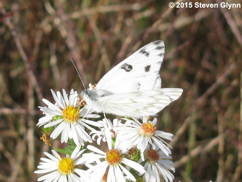 Comments: Checkered Whites may be residents (meaning that at least some pupae survive milder winters with adults emerging in the spring) in the southern counties, but the few that appear at Sandy Hook and elsewhere in late summer and fall are probably strays from the south. However, there are a few spring reports from Sandy Hook and the Raritan Bay area, which may represent residents.