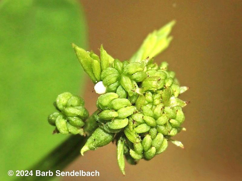 Egg on flower buds of Crownvetch (Securigera varia), a non-native caterpillar food plant for Wild Indigo Duskywing.