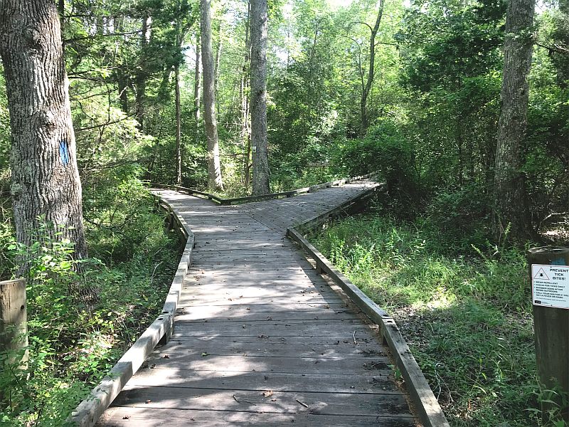 Exploring from the north end Artisian Well Road, the trails leading left or north from the artisian well and boat ramp, such as Oak Ridge Trail or the camping loop have Atlantic White Cedar and some low damp areas. Taking the boardwalk south from this area will bring you to more Atlantic White Cedar bogs.